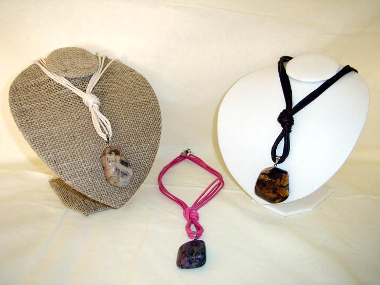Pedras roladas variadas com cordo encerado.